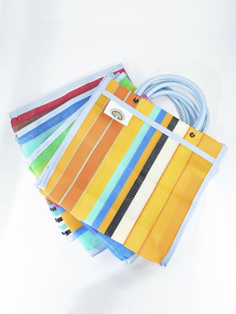 Feita 100% de Garrafa Pet, a Mini Sacolinha de Feira é extremamente resistente, suportando até 4Kg.